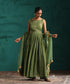 Green Hand Embroidered Anarkali Kurta in Tissue Chanderi with Organza Dupatta and Wide Pants