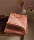 This peach and gold brocade fabric exudes understated luxury, featuring elegant vine motifs intricately woven in shimmering gold zari. The soft peach base beautifully complements the golden detailing, creating a rich, textured fabric that speaks of traditional craftsmanship and meticulous handloom artistry.