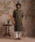 Olive Green Handloom Cotton Silk Mirror Work Kurta With Pant